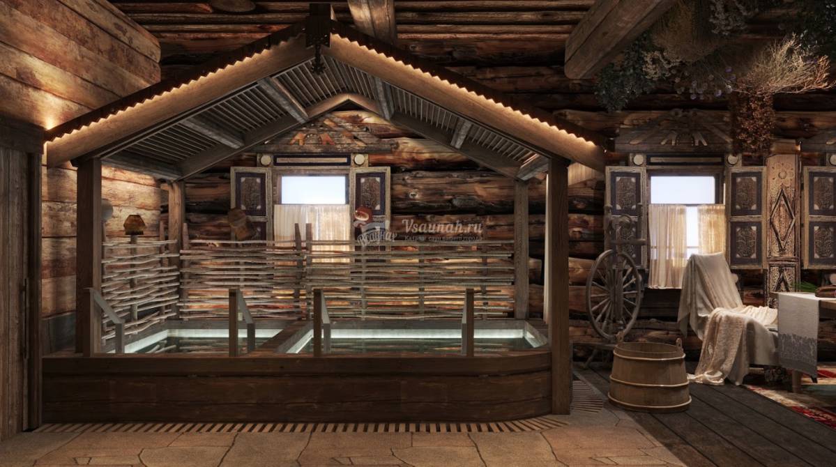 Основной пар - парение на осиновой полке дубовыми и березовыми вениками. Растирание прохладным отваром смородины, пижмы, донника, прополиса и погружение в «звенящую воду» - холодную купель с колокольным звоном